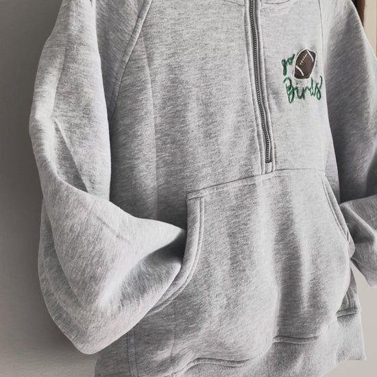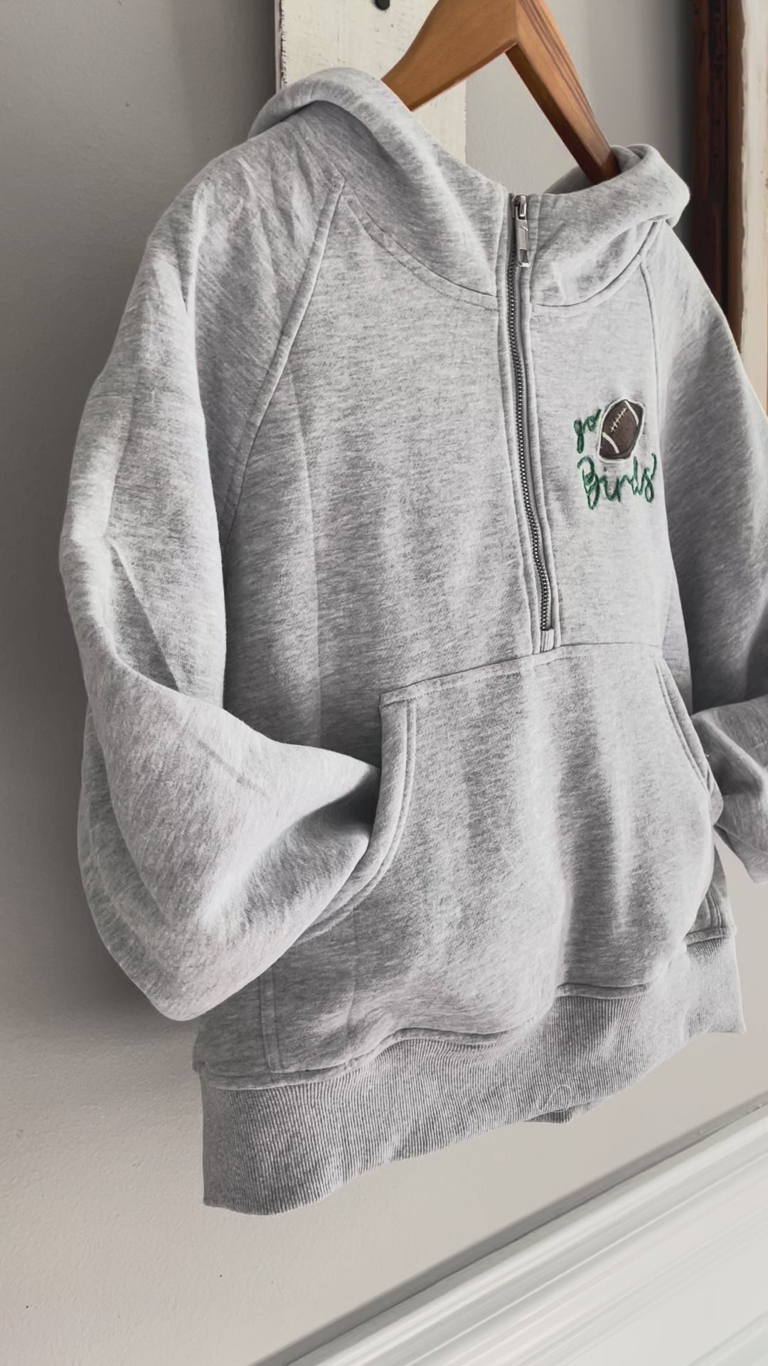 "Go Birds" Hand Embroidered Quarter Zip Hoodie